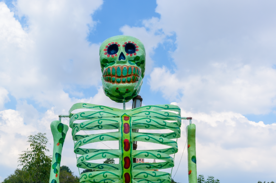 Esta calavera nopalera rinde homenaje a los productores locales, guardianes del campo y del conocimiento ancestral que da fruto a una de las riquezas más valiosas de la región.